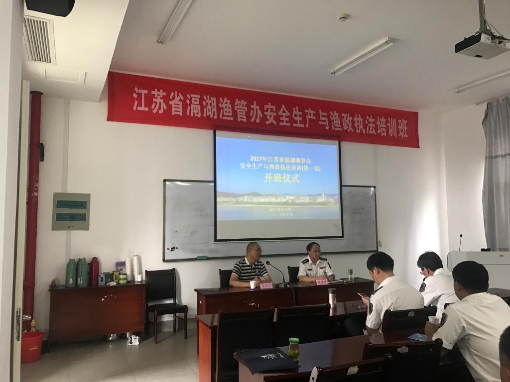 2017年江苏省滆湖渔管办安全生产与渔政执法培训(第一期)于10月9日下午在我院开班。本次培训时长5天,培训的主要课程包括渔业水体污染与保护、团队精神与团队管理、渔业安全生产以及渔业政策与形势分析等。
